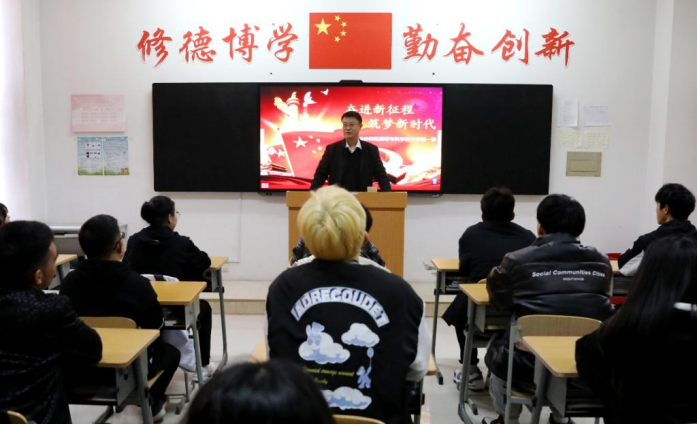 在管理学院市场营销专业221班,党委书记单向东深入宣讲了党的二十大报告内容,引导学生在强国建设、民族复兴的奋斗中“胸怀国之大者”,牢记习近平总书记对青年学子的嘱托,做有理想、敢担当、能吃苦、肯奋斗的新时代好青年,在实现第二个百年奋斗目标的征程中放飞青春梦想!