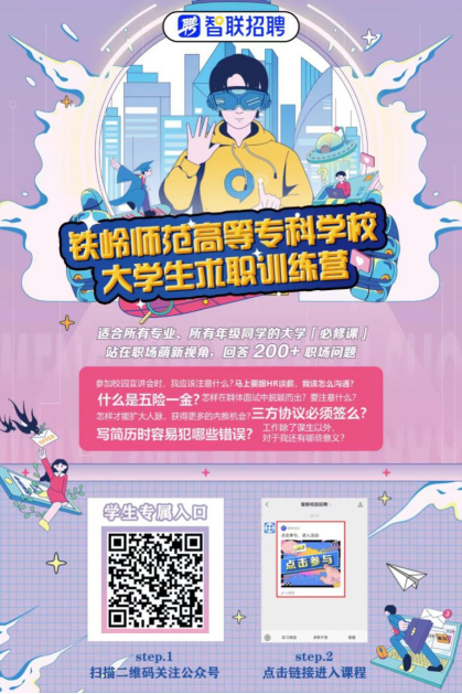 开展高质量的普及性、专业性职业生涯发展指导工作,组织了“大学生求职训练营”线上系列活动,对毕业生实施就业、求职方面的深度辅导训练。训练营活动内容包括个性咨询、能力训练、简历辅导、面试指导、职场人士、生涯人物访谈、成长方案等模块,鼓励和支持大学生在高质量实习中深入学习,积极探索生涯发展道路和全面成长。“求职训练营”为毕业生提供“求职全攻略”,同时根据毕业生个性特点提供专业化指导服务。