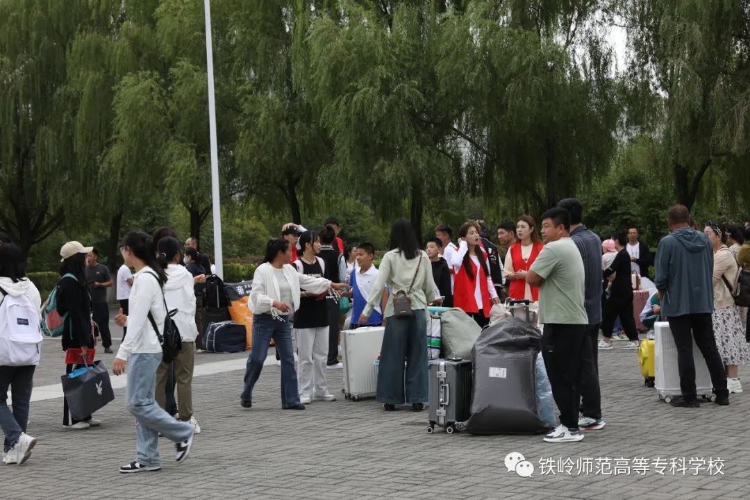 学校在铁岭西站和铁岭站分别设立接站点,接站志愿者现场组织引导新生和家长有序乘车。