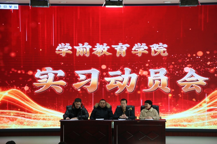 为扎实做好学前教育学院2024届毕业生实习工作,有效引导学生明确实习的目的和意义,更好地适应实习生活,学前教育学院于2023年12月21日下午1点在B报告厅举行2024届实习动员大会暨2024届毕业生双选会。大会由学前教育学院副院长郭以飞主持,学前教育学院院长刘利民、学前教育学院党总支书记张彦龙、学前教育学院副院长康燕、指导教师代表、企业代表以及全体辅导员出席此次会议。