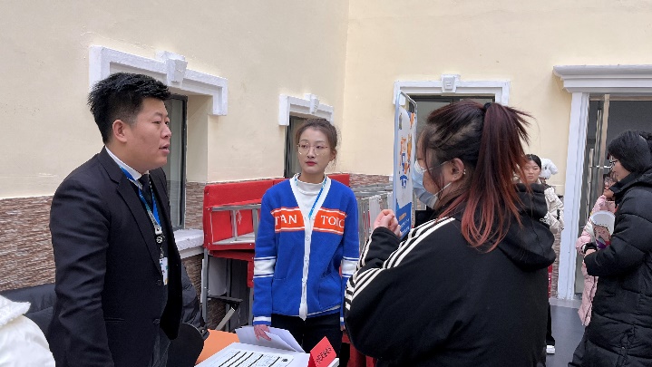 会议结束后,2024届毕业生前往学前教育学院二楼展播厅参加双选会,用人单位通过宣讲、宣传单页、展板等形式向同学们介绍相关招聘信息,同学们踊跃投递个人简历,并进行现场初试,多名学生达成就业意向。