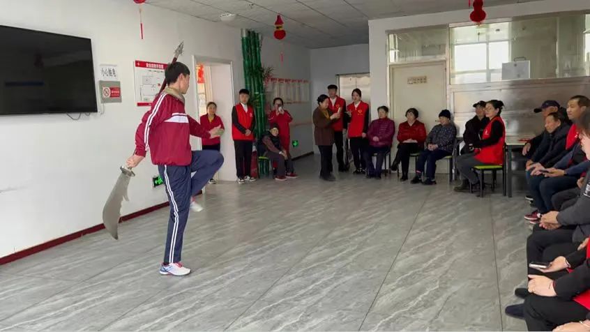 莫道桑榆晚,为霞尚满天。3月8日,体育学院团委组织体育教育、健身管理专业20余名团学干部前往铁岭市工人街居家和社区养老服务中心进行节目演出与关怀慰问。在抵达养老服务中心后,师生首先与工作人员进行了交流,了解养老服务中心的基本情况,按照预定流程对场地进行布置,搀扶老人们入座。在养老服务中心工作人员致欢迎词和师生们热情洋溢的自我介绍结束后,同学们开始了专业特长表演。原地空翻、拳法、刀术、棍术,同学们精湛的专业技能和精彩的表演引起了老人们的阵阵喝彩。健身与管理管专业的同学们还给老人们介绍了适合他们的休闲运动。养老服务中心的工作人员准备了精彩的歌曲,在欢乐和谐的氛围中老人们的脸上也挂满了笑容。