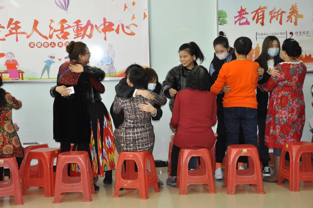 活动接续进行了“你听我说”的倾述互动,“一老一少的搭配”,互吐心声,志愿者诉说自己奋进的读书生涯,老人们表述自己晚年幸福生活的点滴。最后相互鼓励,彼此都要积极面对生活,并给对方一个爱的“抱抱”,让每个人的内心都是暖暖的。