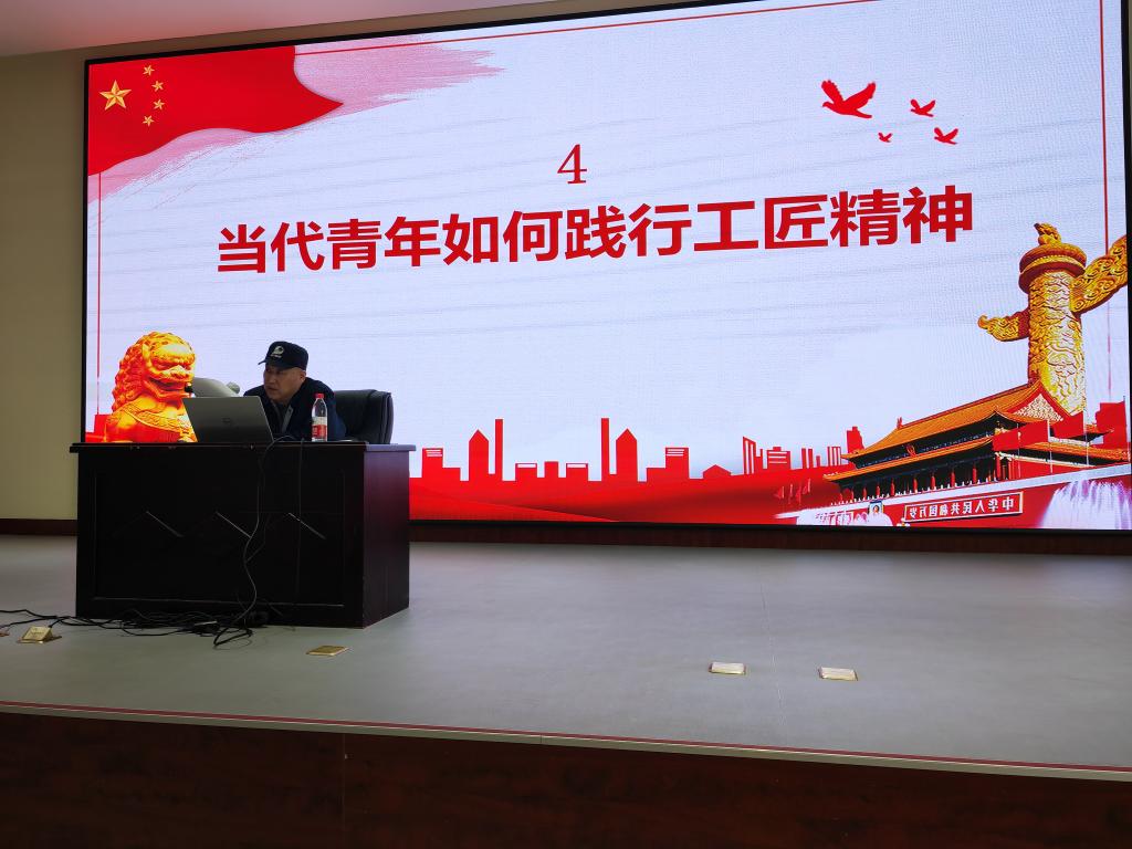 讲座中,左利志师傅与师生分享了自己的成长之路,回顾了从一名中专生成长为生产一线的蓝领专家、从一名普通工人到辽宁省劳动模范的30多年的奋斗历程,深入浅出地诠释了劳模精神、劳动精神、工匠精神的内核。“我觉得执着、细致、创新是匠心所在,也是工作的基本态度,我只是在履行一名工人应尽的职责,工作就应该这样做。”左利志道出了作为一名劳模、一名大国工匠的心声,更激励着同学们珍惜宝贵学习机会,深钻细研专业技术,练就过硬本领,传承工匠精神,争做领跑青年。