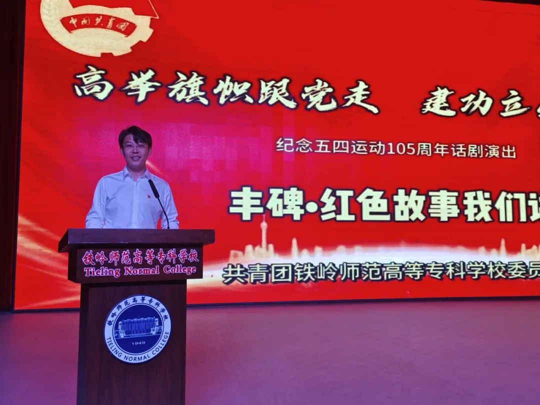 5月27日,“高举旗帜跟党走 建功立业新征程”纪念五四运动105周年话剧《丰碑·红色故事我们讲》在铁岭师范高等专科报告厅隆重开幕。全剧以“居家思政—红色实践团”为主题,是一场关于我校“居家思政”育人工作的汇报,是一部具有红色传承教育意义的话剧,更是一堂生动的思政课。学校党委书记单向东、副校长王超、党委委员宣传部长韩军、学生处处长孙海波、团委书记迟宝策、学生处副处长王旭、学生处副处长李媛媛、思政部副主任李艳波、各学院主管学生工作的党总支书记、辅导员、团员青年代表出席并全程观看演出。