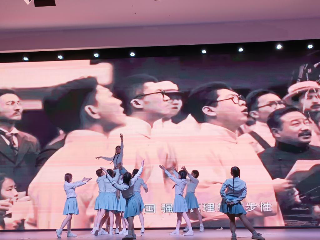 话剧在舞蹈表演中接近尾声,展现了青年人在革命运动中觉醒之势、在新时代发展朝气蓬勃之力。