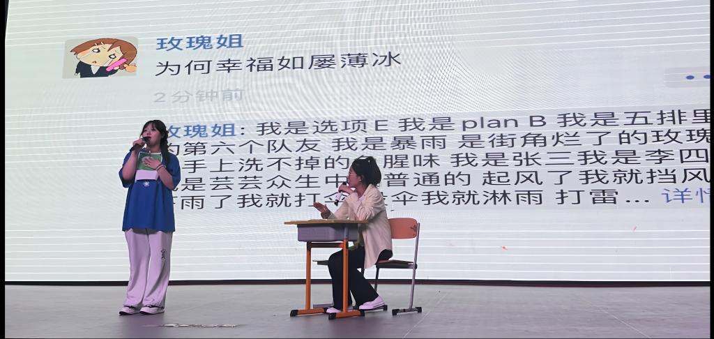 2024年6月12日18:40,在学校A报告厅举行了一场别开生面的校园心理舞台剧大赛,欢呼声与掌声此起彼伏,演员们的出色表演和精彩剧本吸引了众人的目光。
