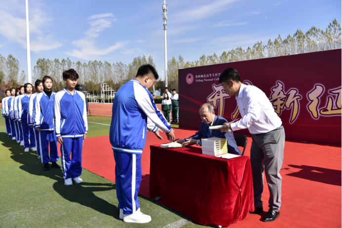 曲建武教授为2021级学生代表赠送书籍