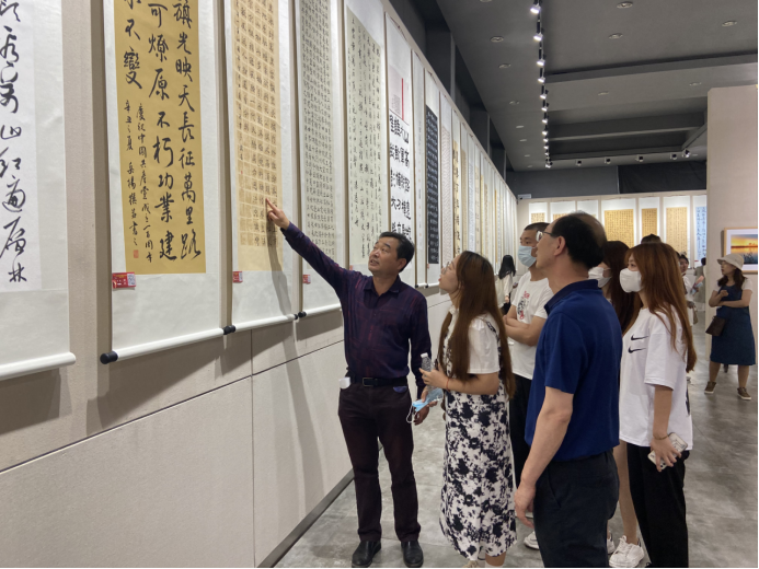 按照文学院的学期活动计划,6月25日,文学院领导、书法教师、辅导员带领艺术教育专业2019级、2020级全体同学,参加了由市委宣传部举办的“铁岭市庆祝建党一百周年书法展”活动。