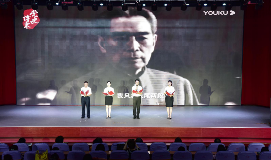 在此次主题党日活动中,全体党员现场共同聆听了情景互动式党课“共产党人的杰出楷模——周恩来”。
