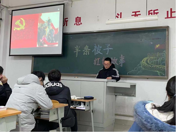 11月23日晚自习,辅导员张家程分别在体育教育192班和健身指导与管理192班给同学们宣讲“半条被子”的故事。半床棉被,也称“半条被子”,是经典红色故事。