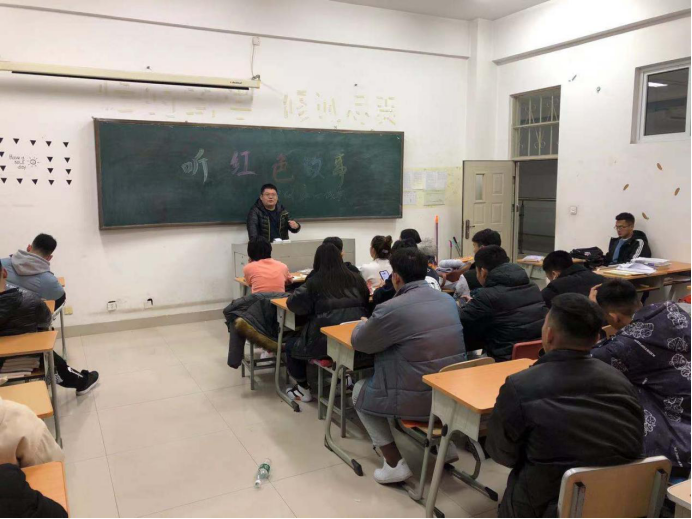 11月29日晚自习,学生党员冯峻琰、宫尔鹏、陈禹润分别到学院体育教育201班、体育教育201班、健身指导与管理201班宣讲半条被子的红色故事。