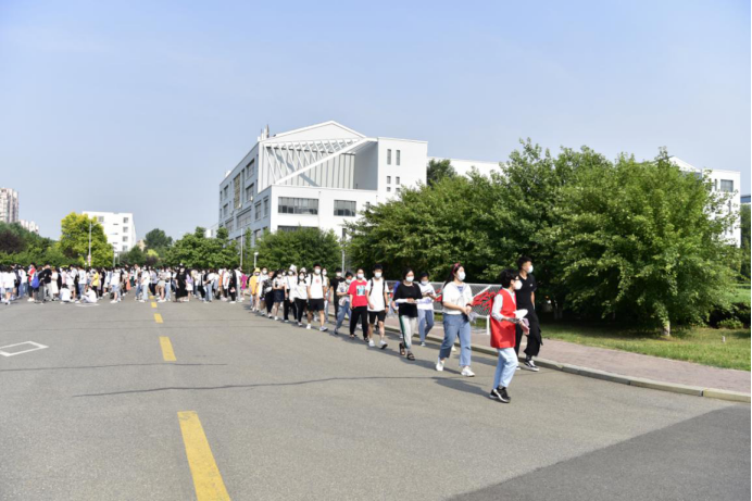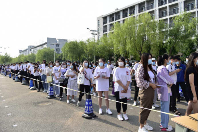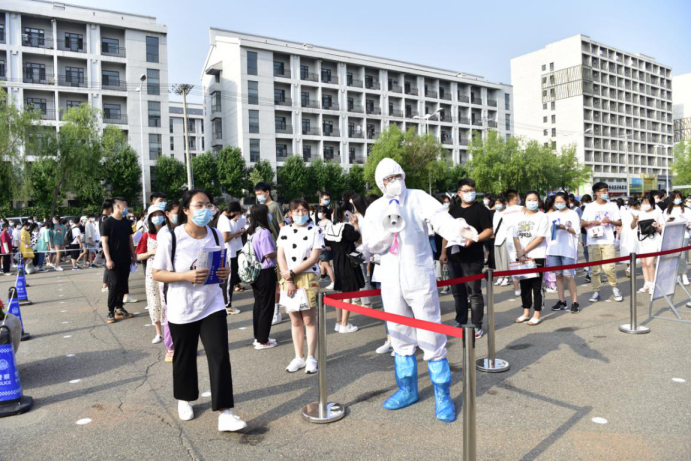 考试当天,为确保各位考生的身体健康安全,进校前,学校工作人员对考生逐一进行了体温检测、更换学校统一的一次性防护口罩等各个方面的防疫举措。